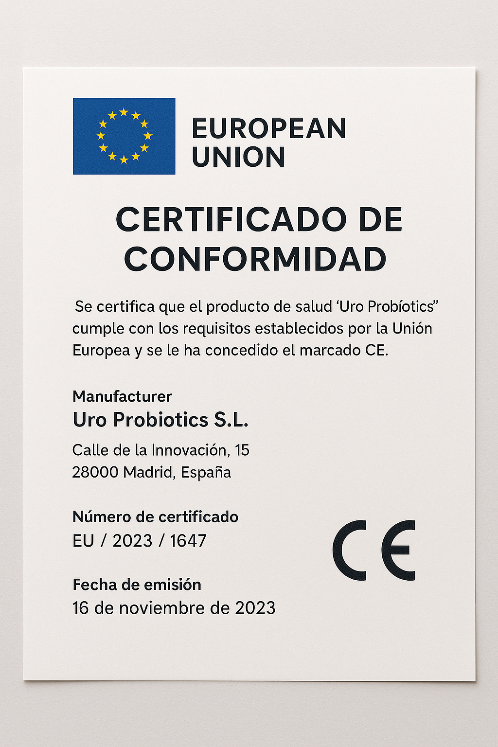 URO cuenta con certificados de originalidad y calidad, además de estar aprobado por la Unión Europea y respaldado por la OMS. Esto garantiza su seguridad y eficacia clínica para la salud íntima femenina.